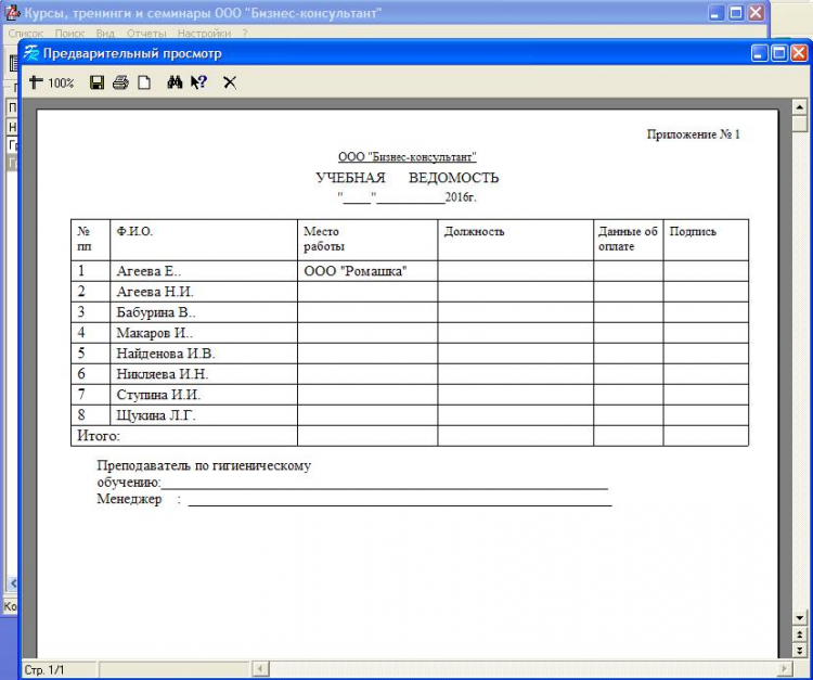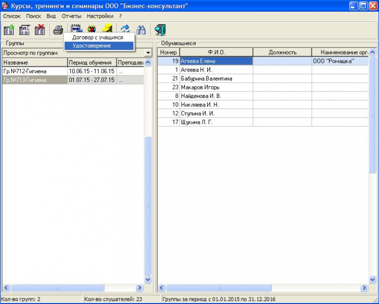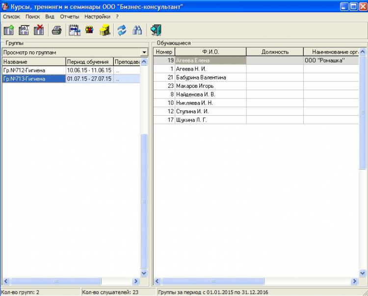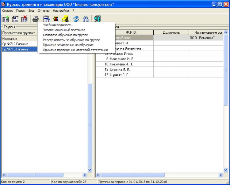 Курсы и семинары - это программа предназначена для учета слушателей курсов, семинаров или тренингов и подготовки необходимой документации. Используя программу можно быстро сформировать все необходимые документы для печати, такие как: