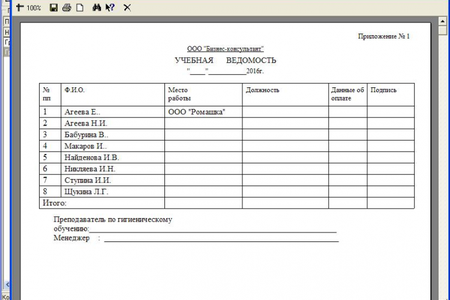 Все документы для печати разработанные в программе можно изменить самостоятельно или добавить новые под специфику вашей организации. Учет слушателей в программе выполняется по группам. Для каждой группы задается название курса или семинара. В программу можно внести неограниченное количество наименований курсов или семинаров. Для каждого курса или семинара в программу можно внести учебный план, в котором можно задать необходимый объем часов по теоретическим и практическим занятиям. Предусмотрена возможность ведения оплат за обучение, с учетом скидок и формированием различных печатных форм: отчет по задолженности за обучение, приходный кассовый ордер, извещение для оплаты через банк и т.д. В программе реализован механизм печати свидетельств об окончании.