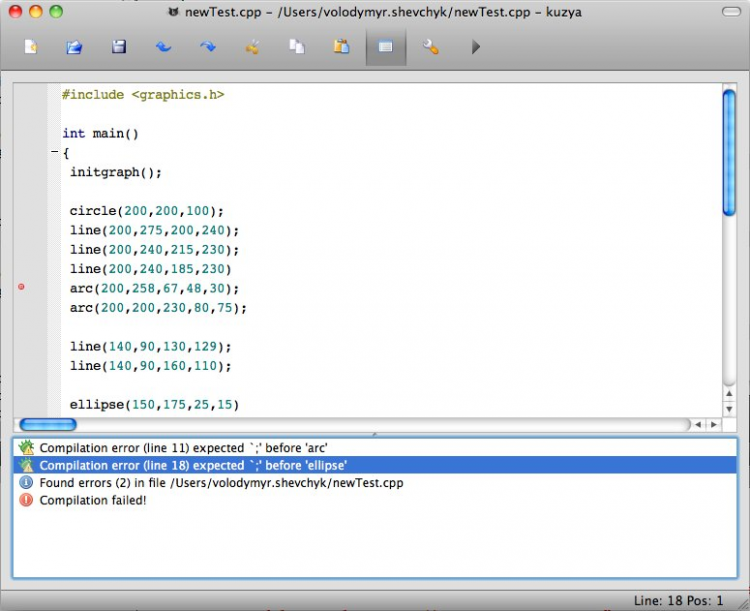 Kuzya — это максимально простая оболочка для обучения. Именно на простоту делался основной акцент. Например, в данной оболочке отсутствует менеджер проектов и вообще понятие «проект». Робота проходит с одним файлом, который содержит текст программы. Для удобного и быстрого набора кода в главном меню находятся шаблоны синтаксических конструкций языков C/C++ и Pascal. Нажимая левой клавишей мыши на выбранном шаблоне можно вставить соответствующий текст в место, где расположен курсор. Изменение языка перевода кода автоматически приводит к переводу шаблонов. Также поддерживаются подсветка текста программы, которая позволяет легко ориентироваться в нём. Минимум возможностей данной оболочки позволяют по максимуму сконцентрироваться на изучении языков программирования.