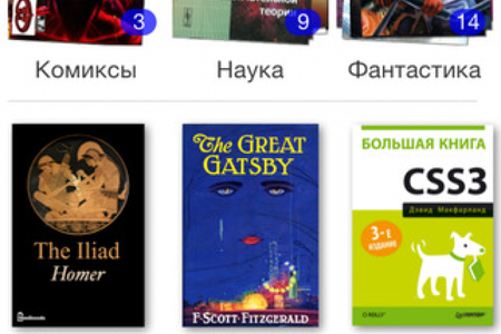 В KyBook, скачанные книги можно удобно каталогизировать с помощью тем, расставить по полкам или отсортировать во всевозможных режимах. При этом, вы можете выбирать обложки для своих книг из всевозможных источников, а также изменять их названия и темы.