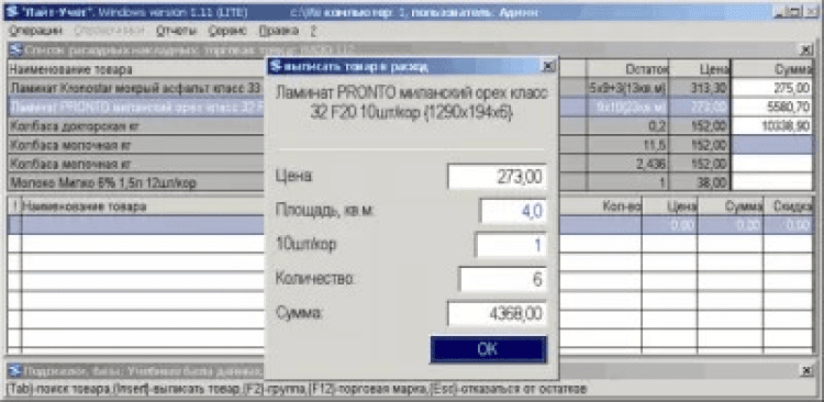 Возможна поддержка штрих-кодирования. нечувствительность к регистру букв — Учет, УЧеТ, учет, уЧеТ, учЕТ, уЧЕТ — для программы одно и тоже; составное наименование товара: группа, торговая марка, цвет, размер и т.д.; больший размер экрана, больше информации; более быстрая Windows печать, так как программе не приходиться запускать отдельную программу печати; понятие «склады — места хранения», позволяет создавать в программе один торговый документ на несколько складов; двойной количественный учет, например, в штуках и квадратных метрах одновременно (размер экрана позволяет), довольно часто применяется в торговле; учёт по размерам и цветам для одежды и обуви; простой и настраиваемый интерфейс для контретных запросов пользователя,который видит только нужные ему поля; настраиваемая структура предприятия: торговые точки, склады, кассы,места хранения, расчетные счета и юридические лица; простая блокировка информации для каждого пользователя отдельно, через рабочий период, например: (-1 день, +1 день); произвольная настройка прав доступа пользователя; настраиваемая интерактивная среда для каждого пользователя в отдельности; более быстрая и корректная работа в сети; возможно использовать программу под WINE в Linux, что довольно актуально,учитывая вирусные заморочки с Windows;