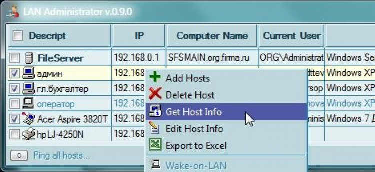 LAN Administrator - это HTA-приложение осуществляет мониторинг, сбор информации и запуск сетевых приложений на избранных хостах локальной сети.