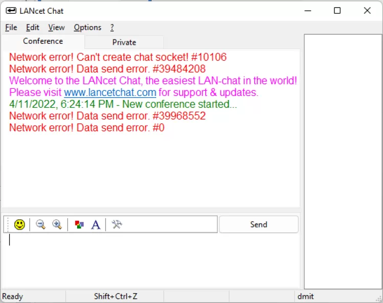 LANcet Chat - это бесплатный чат для малой локальной сети (до 10-20 пользователей). Не требует выделенного сервера, просто установите его на всех компьютерах и сразу начинайте общаться. Единственное ограничение - все собеседники должны быть в одном сегменте сети, без роутеров между ними. Позволяет отправлять приватные сообщения. Может автоматически стартовать при загрузке Windows и оставаться в системном трее, уведомляя вас о новых сообщениях всплывающими окнами и звуками. Можно игнорировать отдельных собеседников. Есть встроенная функция "Антибосс": при нажатии Esc чат сворачивается в трей или стирает все принятые и отправленные сообщения с экрана.