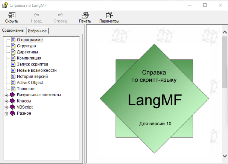 LangMF - это скриптовый язык программирования LangMF основан на движке скрипт-языка VBScript (также можно использовать Javascript, Chakra, VB.NET, C#), он обладает большой гибкостью, легкой автоматизацией с офисными и другими программами, хорошую скорость работы (для сверхбыстрой работы используются подключаемые DLL библиотеки и ASM код!), огромное количество встроенных функций для любых задач, работа с любым языком программирования и полный контроль над ним, функция компиляции исходного кода, создание автономных Ехе файлов (WinXP — Win10) и многое другое.