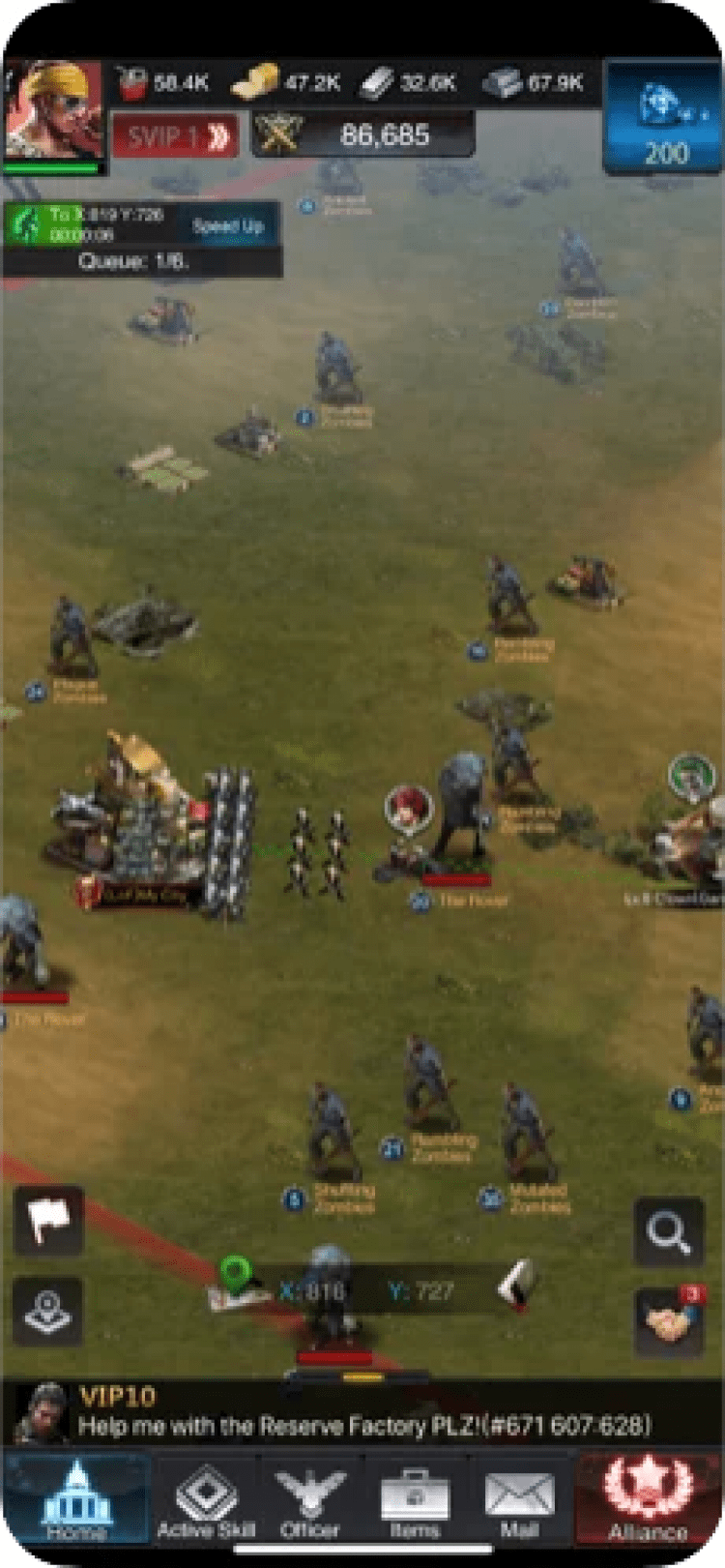 В этой игре, вы будете управлять собственной небольшой базой. Добывайте ресурсы и используйте их для улучшения укреплений, а также изучения новых технологий и тренировки войск. Вам потребуется сильная армия, чтобы противостоять бесконечным ордам зомби, а также набегам других игроков. Сражайтесь за остатки ресурсов с другими игроками, либо объединяйтесь в альянсы, чтобы повысить свои шансы на выживание. Стоит добавить, что игра переведена на русский язык, предлагает множество интересных квестов с ценными наградами, а также позволяет общаться с другими игроками, при помощи встроенного чата.