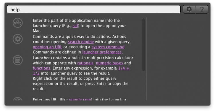 - быстрый запуск приложений. Для этого можно использовать полные имена приложений, аббревиатуры или короткие команды