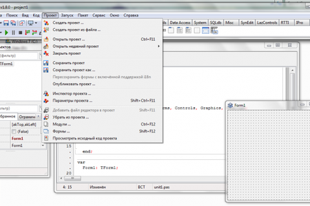 В составе Lazarus также имеет графический редактор форм, который поможет в работе над интерфейсом программного обеспечения. Он предлагает огромный набор разнообразных компонентов, которые могут пригодится, в том числе выпадающие списки, кнопки, меню, поля ввода текста, чек-боксы, фигуры, шкалы прогресса, навигационные элементы, панели вкладок, диалоги и многое другое.