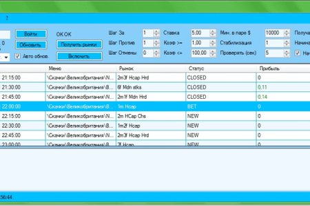 Бот умеет Выбирать и фильтровать рынки по множеству параметров Выставлять ставки с любым смещением (шаги торговли) Закрывать в грининг ап (Уравнивание прибыли и убытков) Реализовывать стратегии догонов (Мартингейл) Торговать на нескольких рынках одновременно Выставлять ставки и закрываться суммами меньше 4$ (Хотя мы настоятельно рекомендуем не делать первоначальные ставки меньше 4$ из-за нарушения правил биржи и возможной блокировки счета) Большое количество параметров и настроек позволяет реализовать более 10 000 алгоритмов торговли.