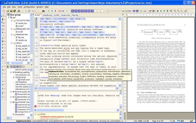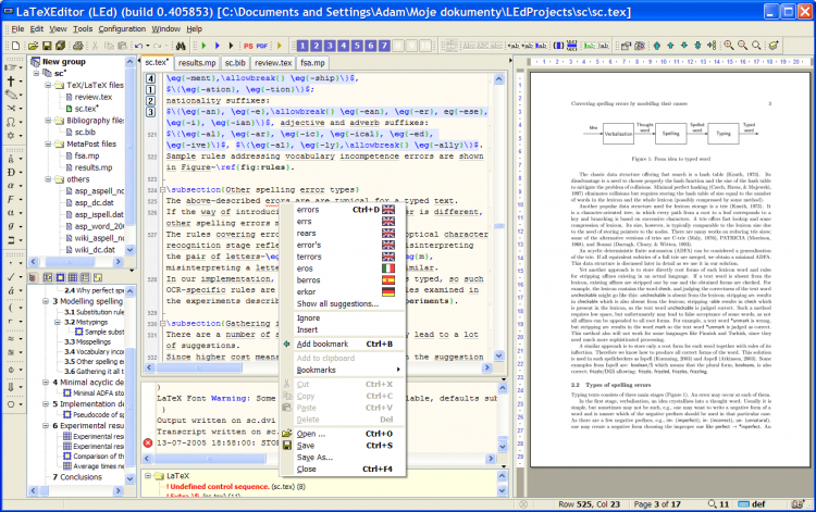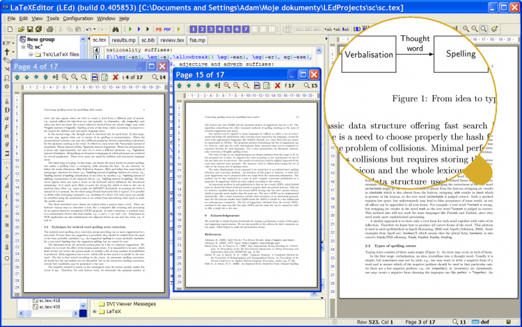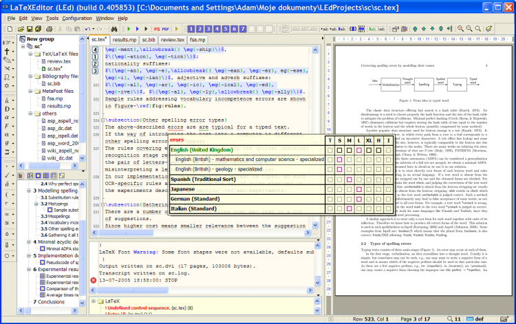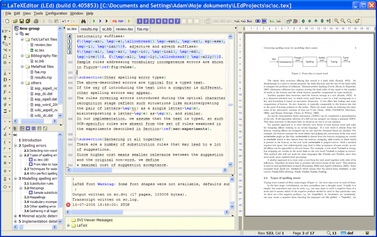 LEd Текстовый редактор для работы с документами TeX и LaTeX. Возможности: - Быстрый ввод команд LaTeX; - Поддержка русскоязычного интерфейса пользователя; - Проверка орфографии на разных языках (в том числе русский и английский); - Подсветка синтаксиса; - Всплывающие подсказки; - Предпросмотр документа в окошке редактора.