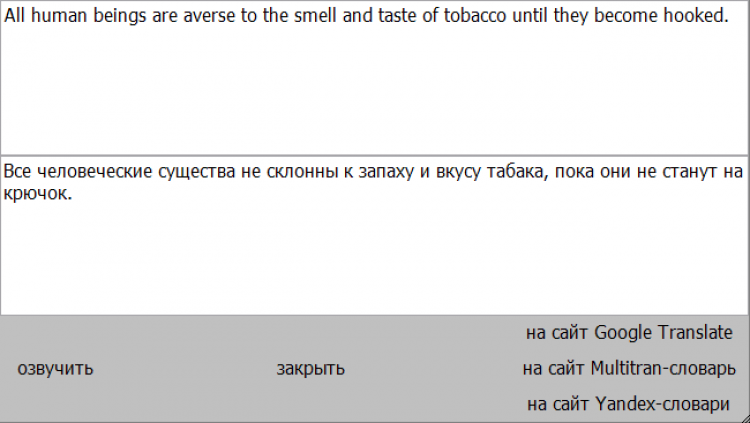 left-top Элементарный переводчик+словарик, нетребовательный к ресурсам. Достаточно навести мышь в левый верхний угол чтобы увидеть перевод выделенного. Если надо перевести крупный кусок текста или получить расширенное толкование слова, то клик мышкой в углу открывает перевод от гугл-переводчика. Там можно отредактировать, озвучить текст, перевести его Яндексом или Мультитраном. Эти функции доступны при наличии интернета. Left-Top может обучать словам.