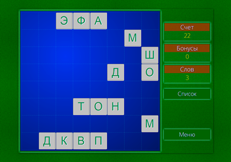 За составление слов длиной 7 или более букв начисляются бонусы, которые можно использовать для повторного удаления слов без начисления очков.