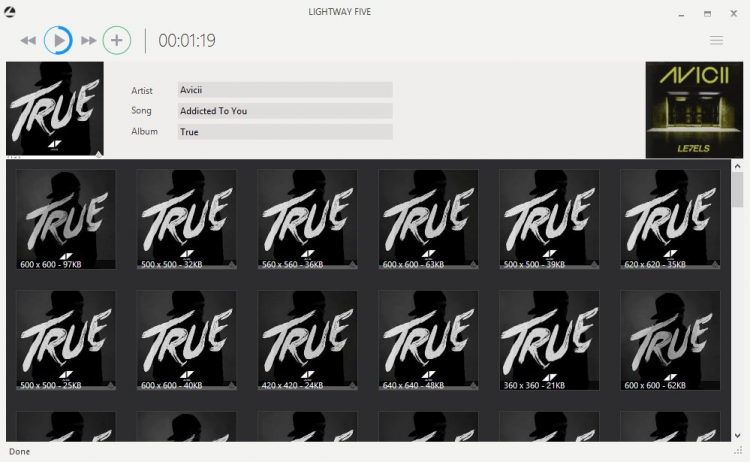 Lightway - это простая утилита, которая поможет быстро найти и загрузить обложку музыкального альбома. Можно выполнять поиск по исполнителю, названию песни и альбома. Lightway находит обложки в интернете и позволяет выбрать и добавить в аудио файл обложку с нужным размером.