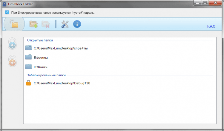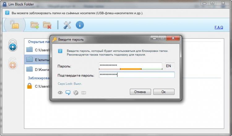 Lim Block Folder - это небольшая программа для мгновенной защиты папок паролем. Она поможет надёжно скрыть конфиденциальные данные на жёстких дисках и съёмных носителях. На каждую папку можно установить отдельный пароль. Полностью портативна и не нуждается в установке специального драйвера. Нет необходимости держать её постоянно запущенной. Имеет удобный и дружественный интерфейс. Для продвинутых пользователей доступна работа из командной строки.