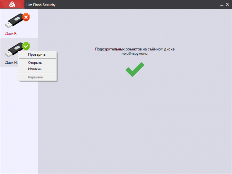 Бывают случаи когда установленный антивирус удаляет все вирусы на флешки, но восстанавливать данные никакой антивирус не будет, тут также поможет софтинка Lim Flash Security. Ну а если вы вставите вирусную флешку, то данная программа укажет на все, что может причинить вред вашим данным, поможет очистить флешку от вируса и восстановит все данные как они и были.