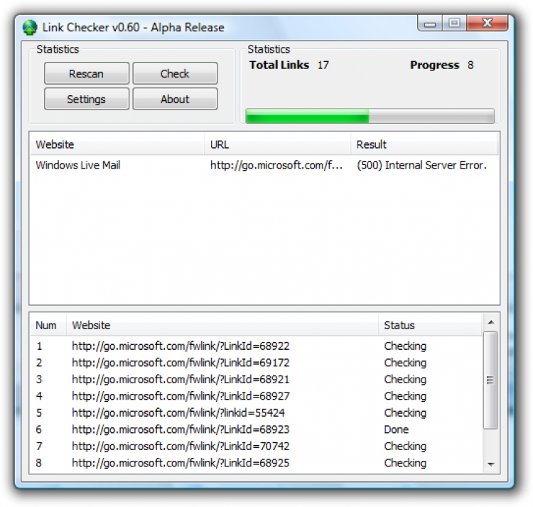 Link Checker обладает следующим набором функций: