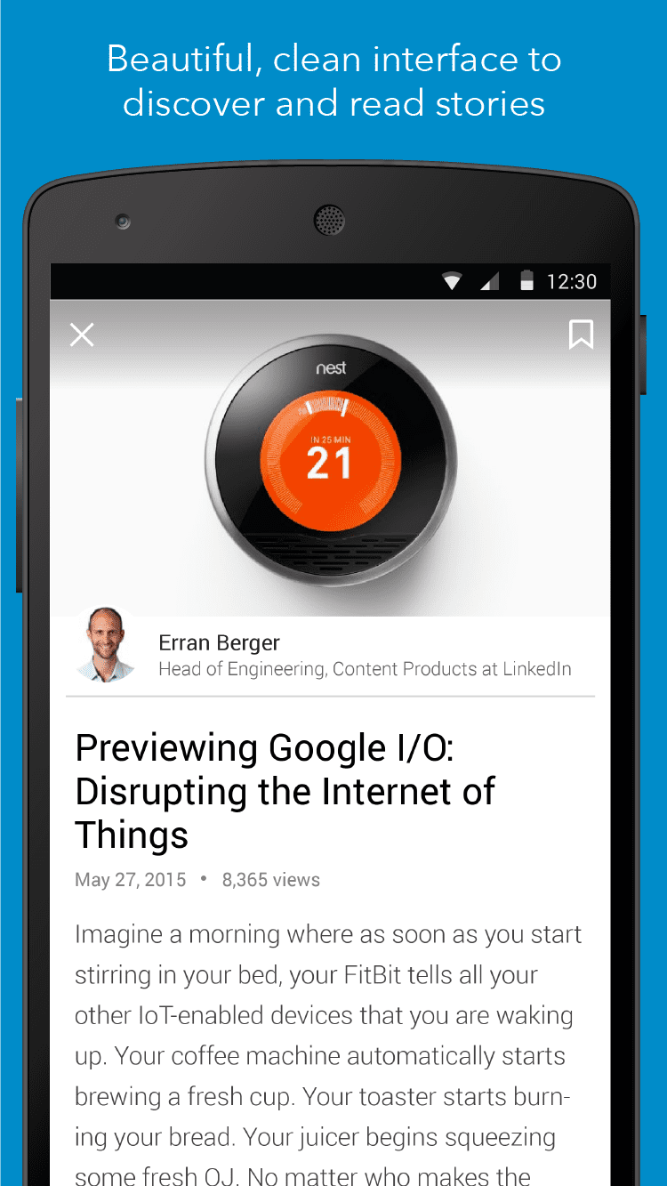 LinkedIn Pulse — это приложение позволит вам читать актуальные новости из сферы бизнеса со всего мира, основываясь на ваших персональных предпочтениях. Вы можете читать новости от таких изданий, как New York Times, Wall Street Journal, Business Insider и AP Top News, самостоятельно выбрав источники новостей, чтобы читать только интересную и важную для вас информацию. Вы так же будете получать уведомления о появлении важных новостей. Приятной особенностью приложения LinkedIn Pulse является возможность сохранения статей для прочтения позднее при помощи свайпа вправо, удалять неинтересные новости при помощи свайпа влево, а так же делиться новостями с друзьями через LinkedIn, Facebook или Twitter.