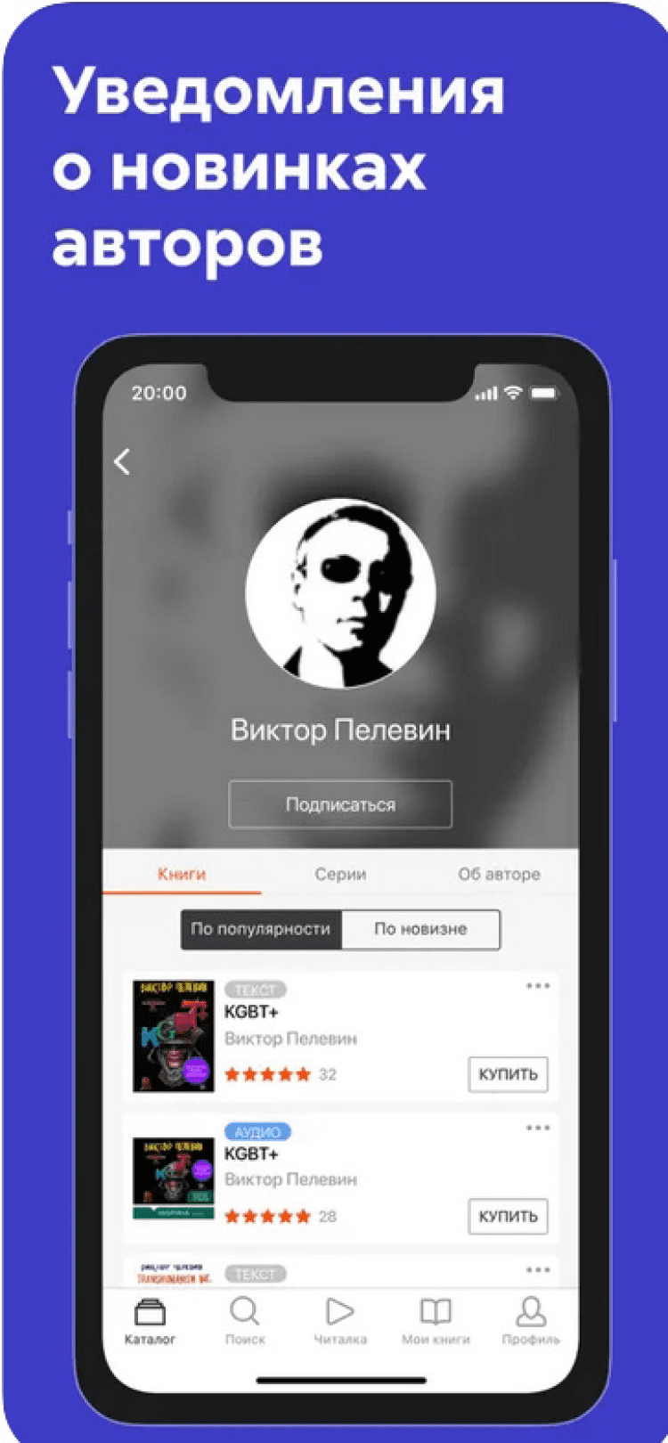 - страница автора с биографиями, рецензиями, удобным доступом к сериям книг;