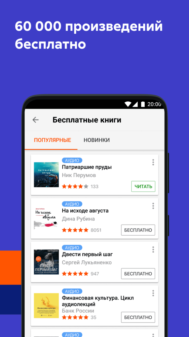 - слушайте и оценивайте отрывки книг, прежде чем купить целую аудиокнигу. У нас самые большие бесплатные фрагменты в Google Play – для большинства книг от 10 минут до часа;