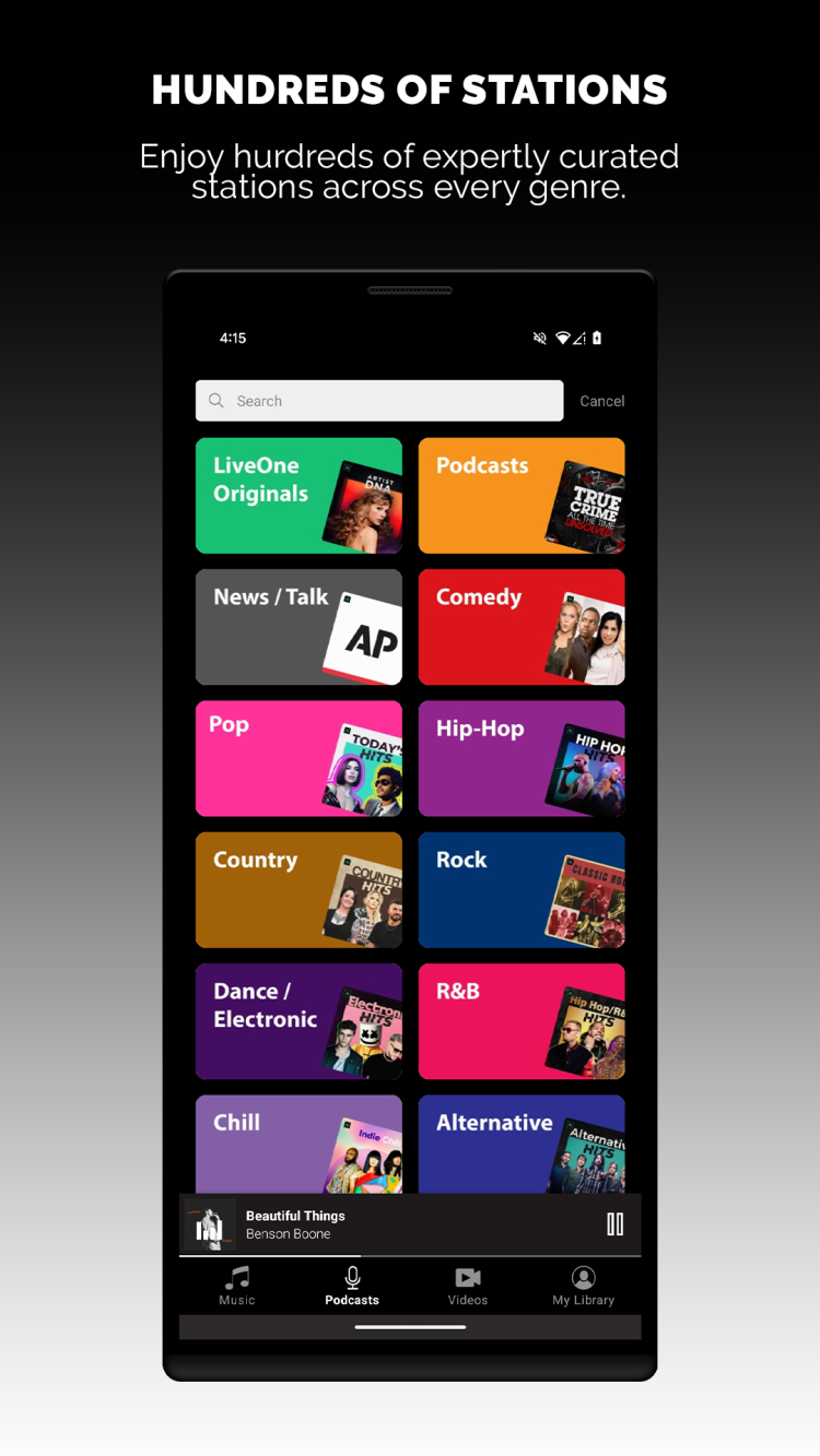 Ищете новое приложение, чтобы наслаждаться музыкой на ходу? Тогда попробуйте LiveOne. Это программное обеспечение поможет вам по-новому взглянуть на музыку. Оно предоставляет доступ к обширной библиотеке музыки практически любого жанра, в любое время и абсолютно бесплатно. А если вы жаждете новых впечатлений, вам наверняка понравятся тщательно отобранные, курируемые станции. Они содержат музыку от разных исполнителей в похожих жанрах, помогая вам открывать для себя отличные композиции и создавать собственные плейлисты. Еще одна особенность LiveOne для Android — это расширенная система рекомендаций, которая предложит вам новых исполнителей и треки в соответствии с вашими предпочтениями. С этой программой вам не будет скучно.