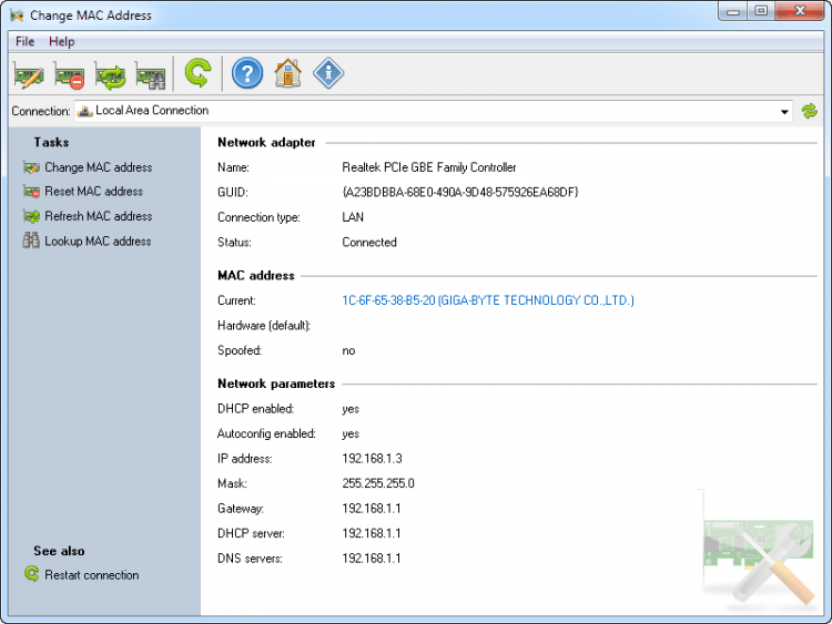 LizardSystems Change MAC Address — это программа, которая поможет скрыть или подменить реальный MAC-адресс сетевого адаптера.