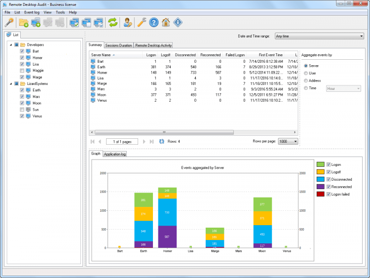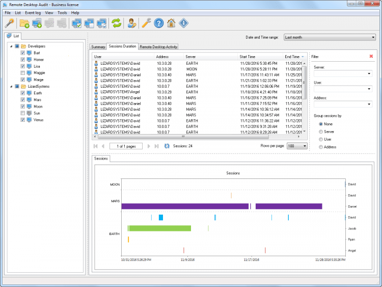 Remote Desktop Audit — это программа, разработанная для мониторинга активности пользователей, которые зашли на ваш сервер через удаленный доступ. Вся информация о рабочих сессиях со всех ваших серверов собирается в одном месте для глубокого анализа.