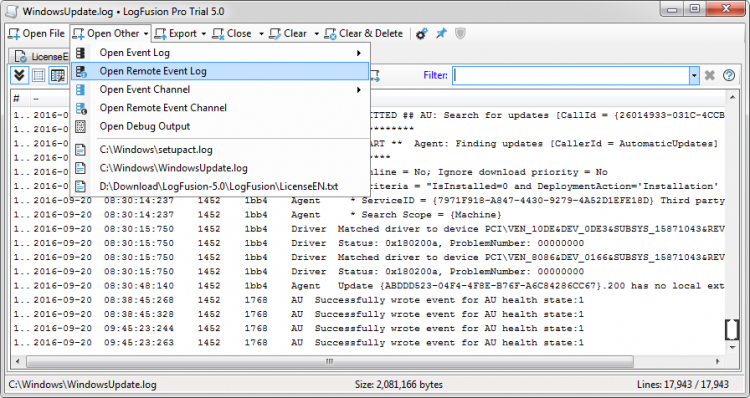 LogFusion Мощная программа для мониторинга лог-файлов, которая упрощает задачу парсинга информации из них. Программа обладает такими полезными функциями, как подсветка строк и фильтр записей, которые помогут быстро найти нужную информацию.