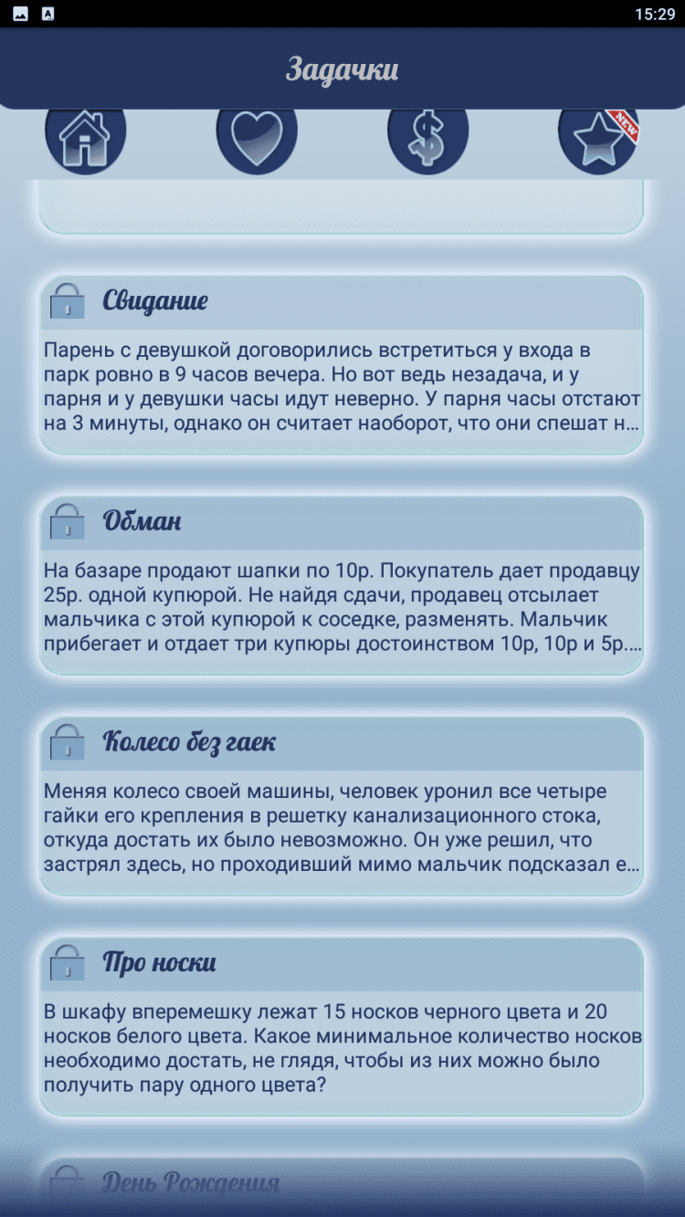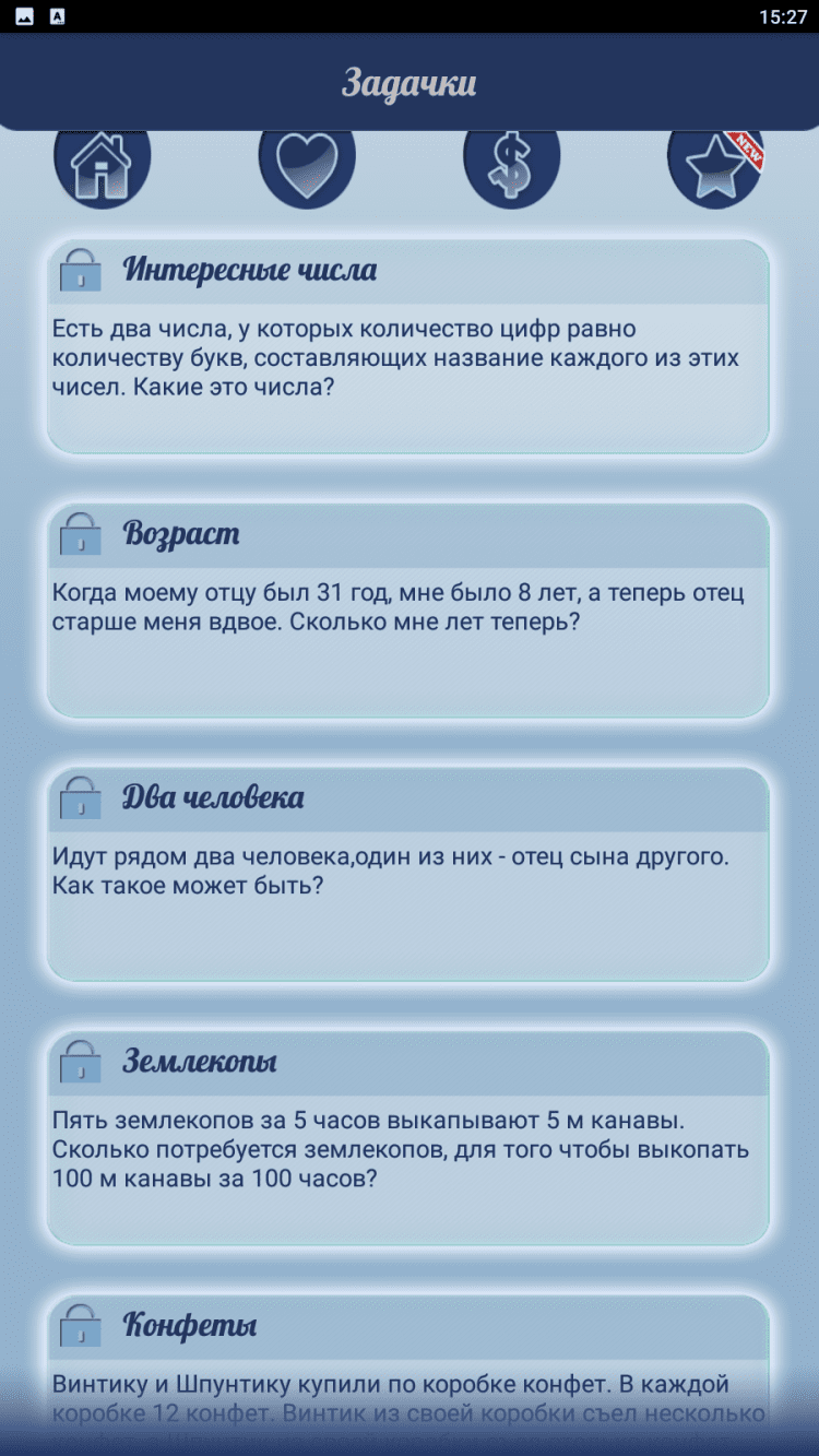 Логика, Задачи, Головоломки — это приложение отлично подходит как детям, так и взрослым для гимнастики ума. Здесь собраны лучшие логические задачи. Некоторые из этих логических задач, возможно, вы встречали раньше. Но каждый из вас найдет новую головоломку, над которой придется хорошо подумать.
