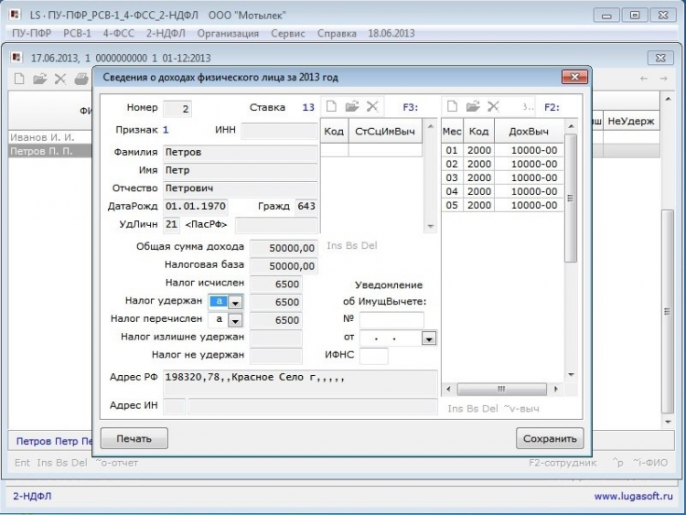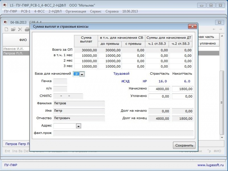 LS · ПУ-ПФР_РСВ-1_4_ФСС_2-НДФЛ - программа для подготовки и формирования сведений по формам персонифицированного учета (ПУ-ПФР), РСВ-1, 4-ФСС и 2-НДФЛ.