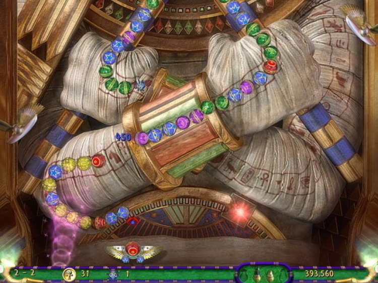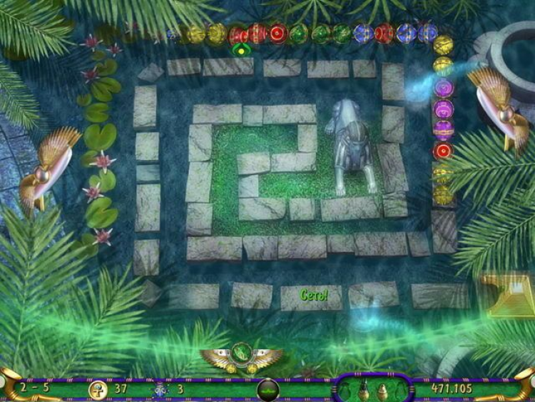 Помогите Ка фараона выстоять в неравной борьбе и победить воинов Сета! Стреляйте из катапульты по длинным цепочкам разноцветных шариков, которые толкают перед собой скарабеи. Выстраивайте звенья из трех и более шариков одного цвета, чтобы можно было их уничтожить. Если вы разбиваете три звена подряд, вам достается бонус сфера силы. Такие сферы срабатывают по-разному: замедляют движение скарабеев, увеличивают скорость стрельбы, превращаются в огненный шар, который взрывается и уничтожает все ближайшие шарики. Словом, преподносят воинам Сета множество неприятных сюрпризов.