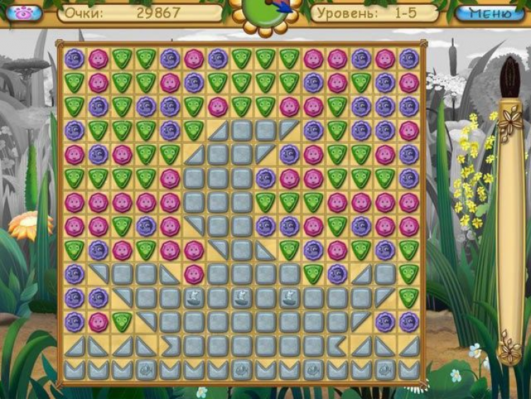 Взрыв Хлопушки очистит от фишек небольшой участок игрового поля, Клякса уберет камешки одного с ней цвета, Счастливый клевер ликвидирует целый ряд самоцветов, а Часики остановят время. Не забывайте поглядывать на часы. Тот, кто быстро справится с заданием, получит самую высокую оценку в пять звезд, но для этого нужно быть очень внимательным и сосредоточенным. Игра в компании с любимыми героями мультипликационного сериала направлена на развитие реакции и сообразительности, она учит детей решать логические задачки, помогает снять напряжение и приятно провести время, раскрасив будни всеми цветами радуги.