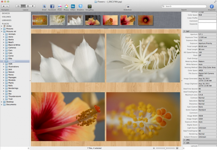 - загрузка изображений на Facebook, Flickr, Dropbox, SmugMug, 500px и Picasa Web Albums.