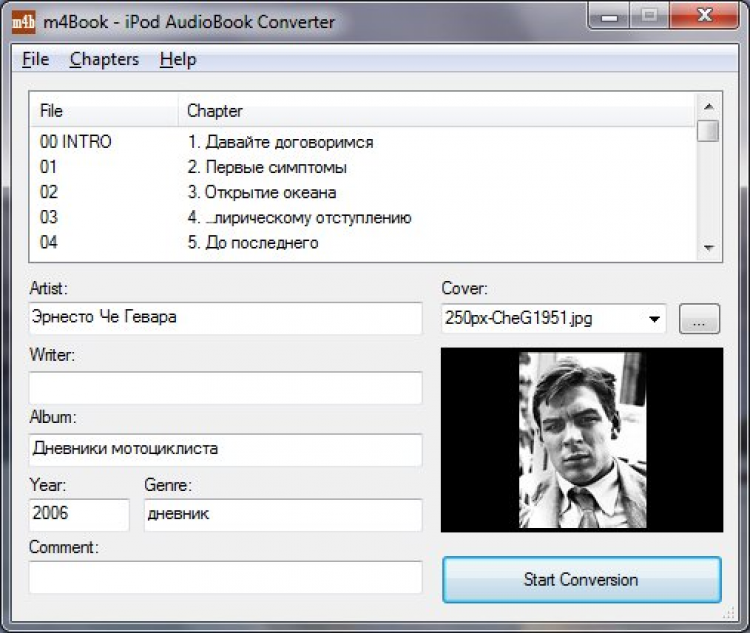 m4Book - это программа перекодирует несколько файлов MP3 аудиокниги в один, в формате m4b, для прослушивания на iPod. Список глав составляется по тегам MP3, или по именам файлов.