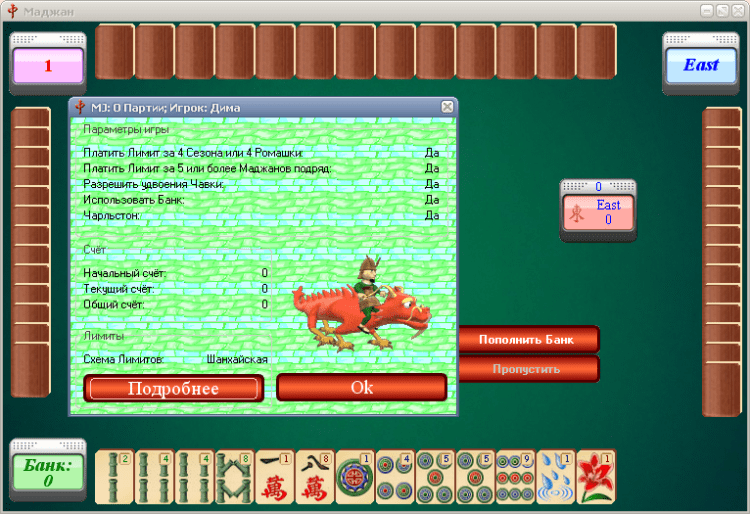 Маджонг — данная программа поддерживает 8 разновидностей правил: Харбинские, Шанхайские, Орские, Китайские Классические, Европейские Классические, Гонконгские, Гонконгские+ и Спортивные.