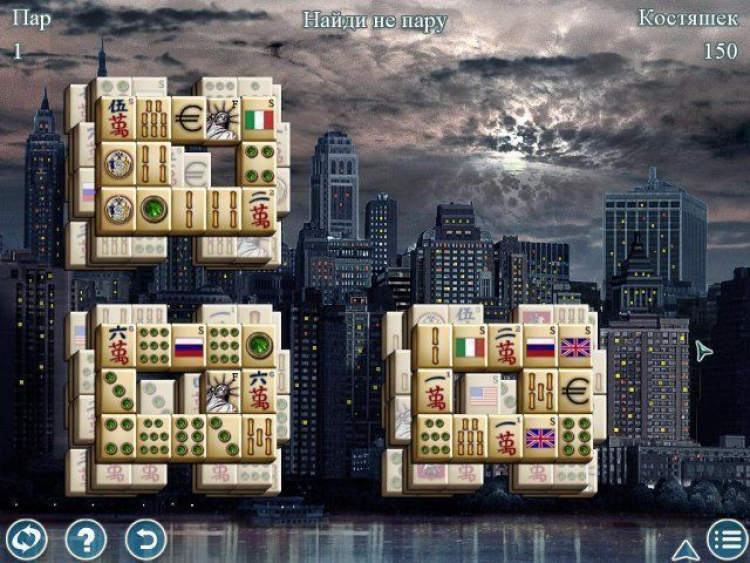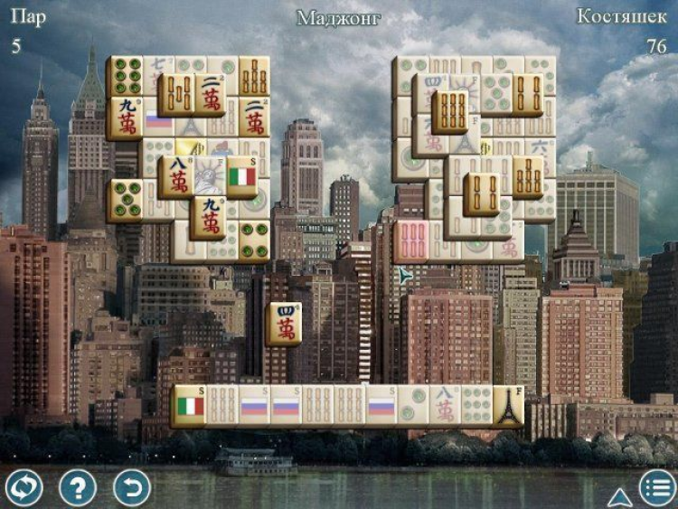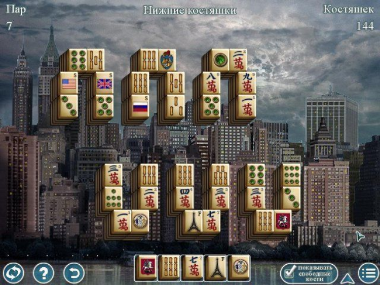 Маджонг. Величайшие города мира - это игра приглашаем вас в увлекательное путешествие по величайшим городам мира в рамках невероятного турнира по игре в маджонг! В каждом из городов вас ждут 20 увлекательных схваток с фортуной, ведь все расклады уникальны и никогда не повторяются! Для того, чтобы сделать игру еще интереснее, создатели придумали несколько новых видов маджонга. Например, в игре «Нижние костяшки» вам необходимо искать одинаковые картинки, ориентируясь на расклад в нижней части игрового поля. В игре «5 секунд» нужно найти и убрать с поля кости, которые показываются лишь на короткое время. В «Великой стене» пары костяшек разделены преградой, а в «Солитере» нужно не только удалить парные изображения, но и сложить колоду по убыванию!