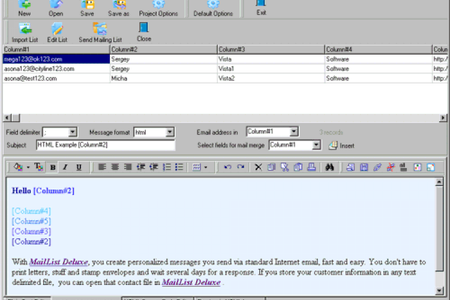 На сегодняшний день одна из самых популярных программ поддержки списков рассылки. Программа поддерживает импорт списков из различных источников, редактирование списков и персонификацию сообщений. Вы можете вставлять различные поля в текст сообщений.