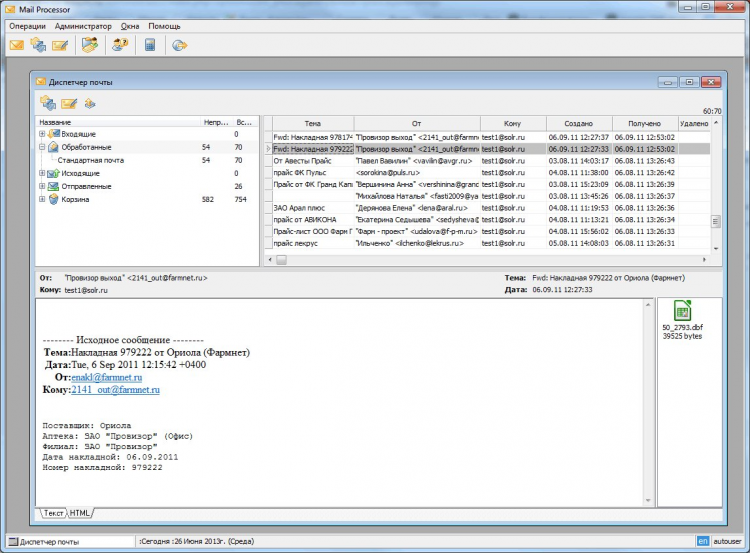 MailProcessor Программа MailProcessor служит для автоматизации работы с входящей и исходящей почтой. В число основных задач программы входят автоматизация обработки получаемых по почте файлов, а также автоматизация отправки файлов.