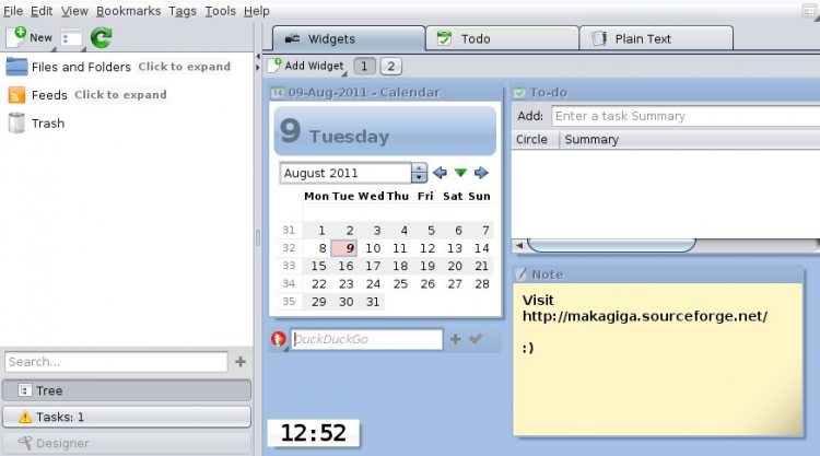 Удобная программа-органайзер для OS Windows. С ее помощью можно создавать To-Do листы, работать с календарем, просматривать новостные RSS-ленты, создавать простенькие текстовые документы и др. Более того, функционал программы можно расширить за счет плагинов.