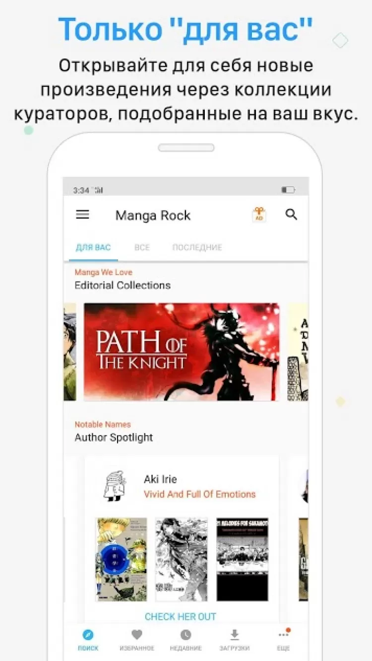 - раздел "Для Вас", в котором вы найдете новые произведения, соответствующие вашим интересам;