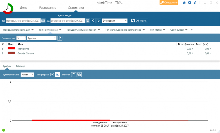 ManicTime - это полезная программа, которая поможет пользователям повысить их эффективность во время работы. Она следит за тем, как человек использует свой компьютер и составляет отчет с большим количеством статистической информацией.