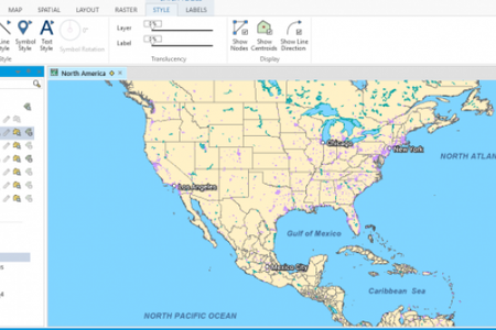 В MapInfo Professionalесть множество CAD-инструментов, включая различные инструменты для рисования (фигур, линий, текста и пр.). Программа позволяет манипулировать слоями, объектами, символами, регионами, точками и линиями, редактировать данные, добавлять подписи, генерировать легенду карты и масштабную шкалу. Помимо этого, она умеет выделять важные территории, области и точки, а также делать SQL-запросы в загруженные базы данных и генерировать статистические отчеты.