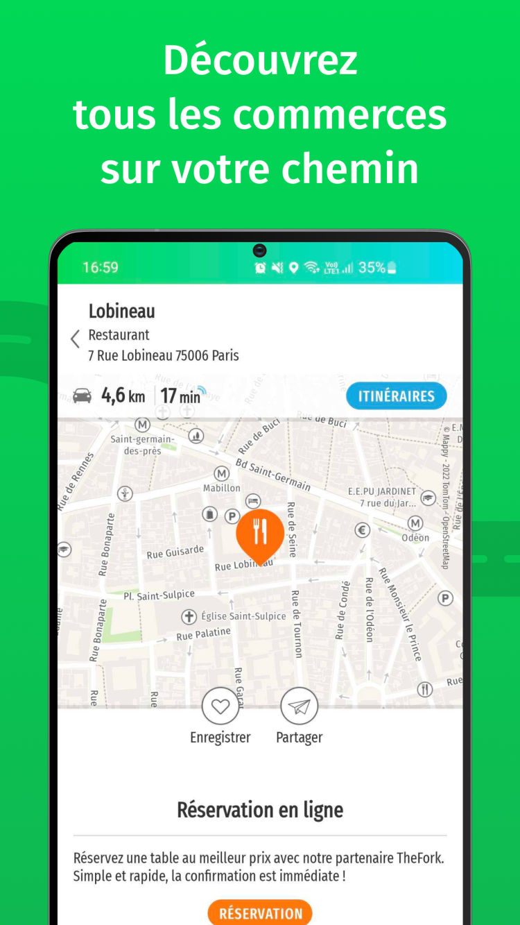 Еще одним преимуществом приложения Mappy для Android являются его подробные карты. Программа не только помогает получить пошаговую навигацию, но и предоставляет вам актуальную информацию о близлежащих объектах и местах на карте, таких как парковки, рестораны, заправочные станции и проч.