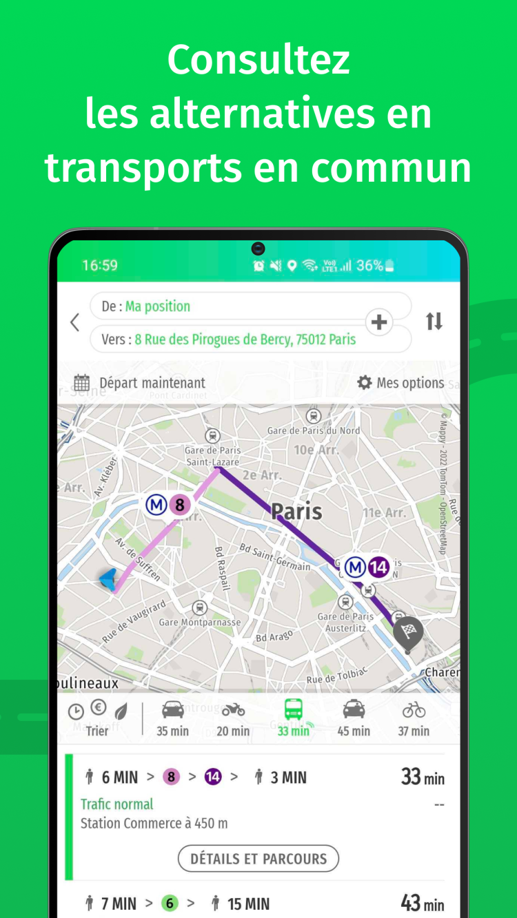 Вы можете быть знакомы с некоторыми мобильными навигационными программами, которые могут быть полезны, но все же оставляют желать лучшего. В отличие от других, более традиционных приложений GPS, Mappy предлагает немного больше. С его помощью вы можете не просто создать маршрут и попытаться следовать ему, независимо от вашего транспорта. Последняя версия приложения помогает сравнивать маршруты для нескольких видов транспорта, таких как автомобиль, поезд, метро, такси или даже сервисов совместных поездок, чтобы предоставить вам лучший маршрут с точки зрения времени в пути, стоимости или удобства. Кроме того, Mappy постоянно отслеживает данные о дорожном движении и общественном транспорте, чтобы помочь вам избежать задержек, предлагая вам лучшие маршруты на ходу.