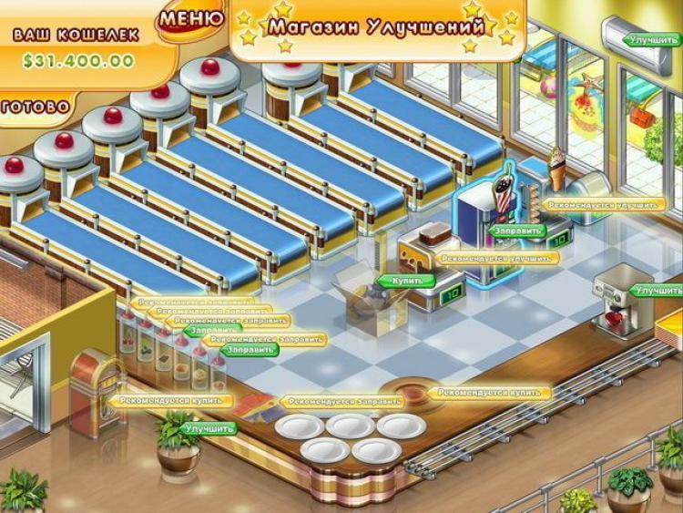 Не забудьте позаботиться и о комфорте своих посетителей. Купите вентилятор, поставьте музыкальный автомат и цветочные горшки. Расслабившись под любимую музыку после тяжелого рабочего дня, уставшие покупатели не станут огорчаться, если им придется немного постоять в очереди, ведь в ваших ресторанах готовят лучшую снедь во всем городе!
