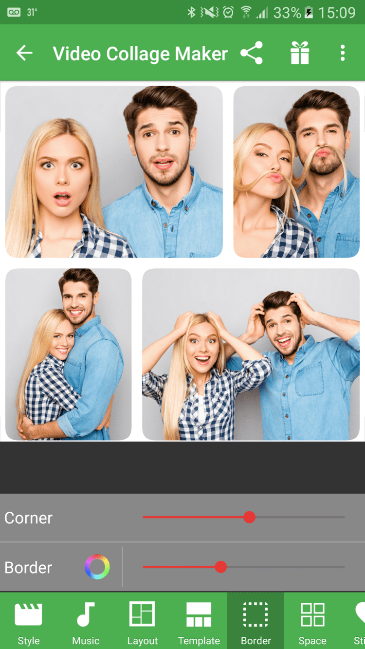 Мастерская видео-коллажей Удобное приложение для создания фото или видео коллажей с наклейками, текстом или прикольными рамками на Android устройствах. Вы сможете использовать более 100 встроенных шаблонов для ваших коллажей, более 100 наклеек, 55 шрифтов, а так же менять фоновые изображения, обрезать ненужные участки изображений, накладывать фильтры, а затем сохранять полученные изображения или видео в высоком разрешении и делиться ими с друзьями через социальные сети.
