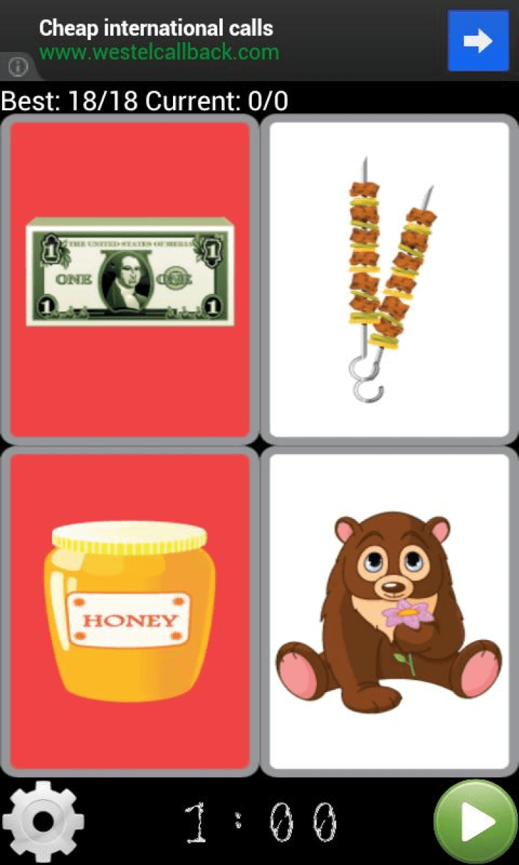 - Режим проверки - за одну минуту, необходимо найти максимальное количество правильных ответов.