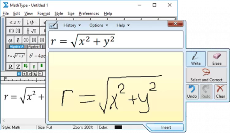 MathType - это программа для тех, кто часто использует математические формулы и уравнения в работе и повседневной жизни. Эта программа обладает коллекцией необходимых символов, которые часто используются в области математики. Суммы, интегралы, радикалы станут доступнее: можно вводить формулы при помощи клавиатуры, так и рисовать их от руки.