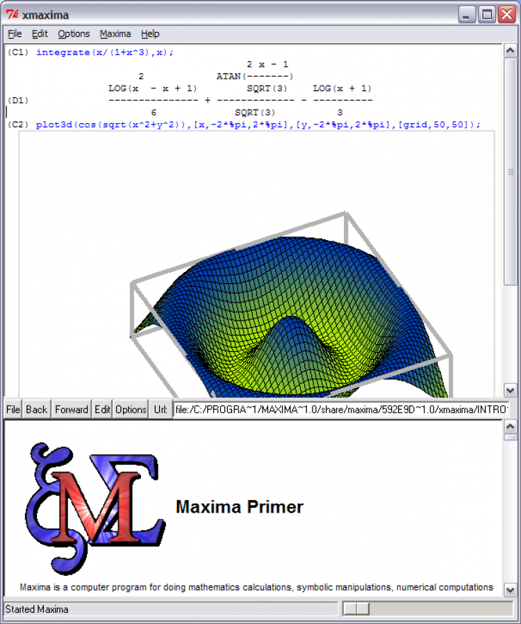 Maxima - это свободная система компьютерной алгебры. Maxima имеет широчайший набор средств для проведения аналитических вычислений, численных вычислений и построения графиков. Она обладает высочайшей степенью переносимости: она может работать на всех основных современных операционных системах на компьютерах, начиная от наладонных компьютеров, вплоть до самых мощных.
