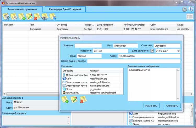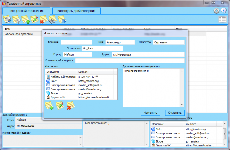 MaxLim Телефонный справочник - это бесплатная, удобная и простая в использовании программа Телефонный справочник.