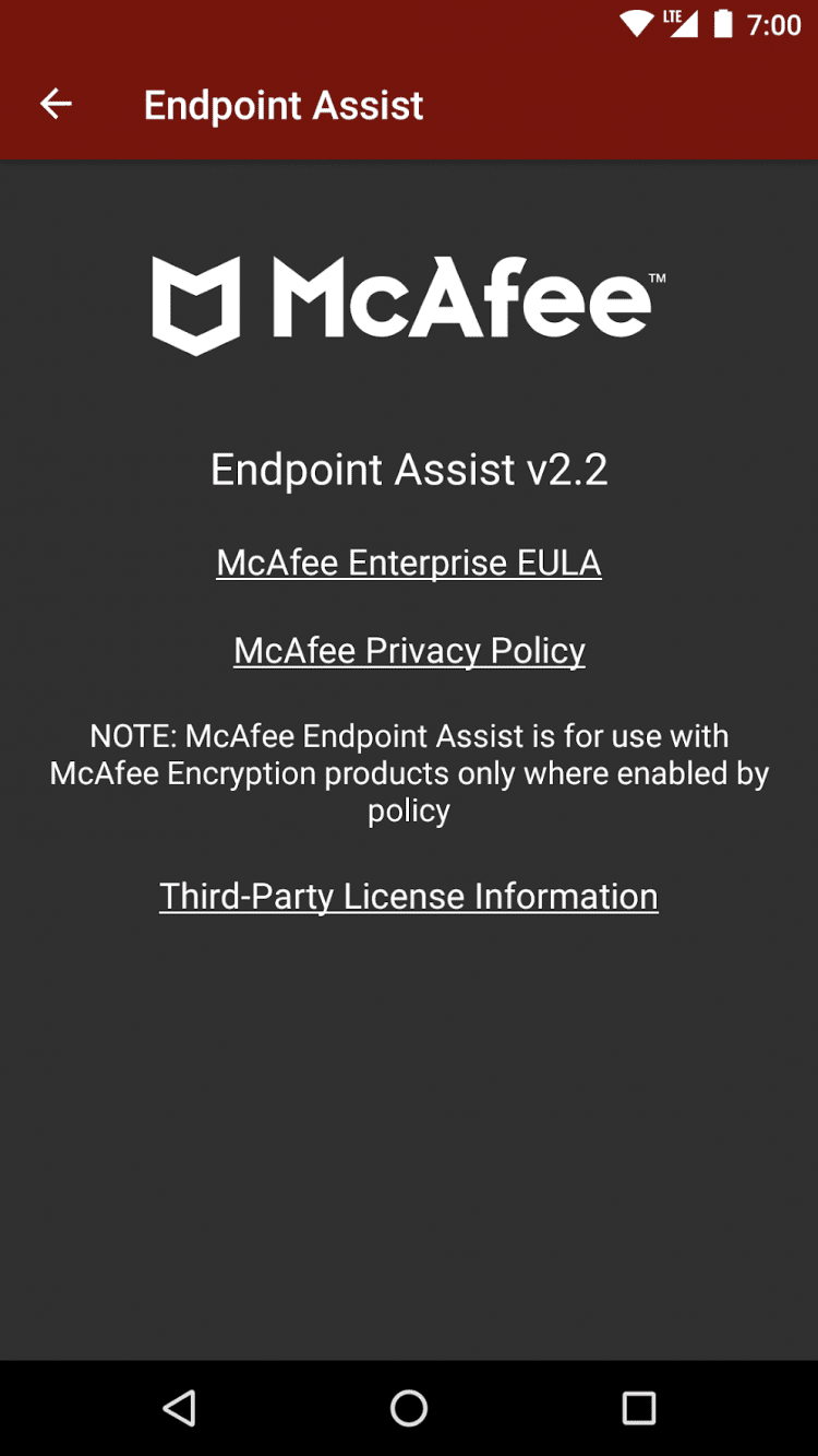 McAfee Endpoint Assistant — это программа для восстановления утерянного пароля, зашифрованного в McAfee Drive Encryption версии 7.1 или выше. Вы сможете получить доступ к данным, открыв McAfee Endpoint Assistant и направив камеру вашего устройства на штрихкод из приложения McAfee Drive Encryption.