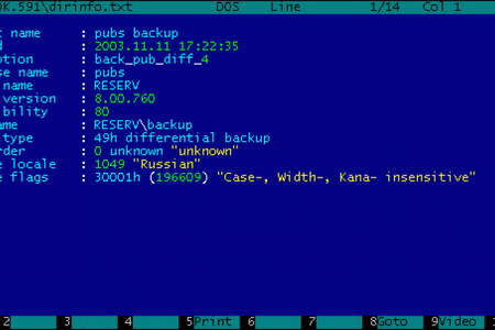 Показывает информацию о бэкапе и базе (файлы dirinfo.txt и dbinfo.txt). Включена поддержка всех типов данных: tinyint, smallint, int, uniqueidentifier, timestamp, bigint, money, smallmoney, real, float, bit, decimal, numeric, char, varchar, binary, varbinary, nchar, nvarchar, datetime, smalldatetime, sql_variant, text, ntext, image, xml.